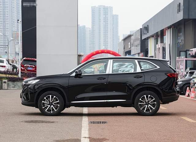 车侧的设计则将哈弗H6经典版的紧致感彰显出来,车窗线条沿着车身和车顶走向逐步汇聚,下窗线则在尾部进行了上扬延伸,使得视觉重心有所太高,腰身采用相对清晰的折角筋线进行刻画,同时在后肩部区域也带有一定上扬,车门下方采用内凹式的型面结构,配合上黑色的裙边组件,让整个车侧都带有了俯冲化的立体观感。
