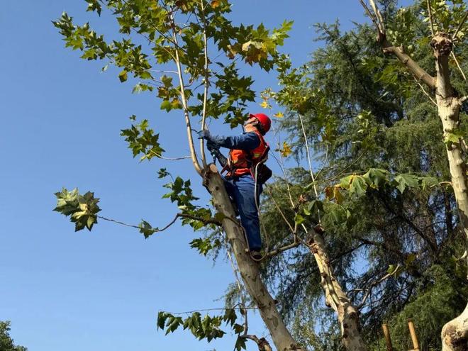 园林上树工刘远治介绍,夏季树木生长快,如果枝条过密,不仅消耗养分,还容易滋生病虫害。“很多枝条和叶片还会伸到建筑或电线附近,安全起见,我们会及时修剪,尤其是低矮或下垂的枝条。”刘远治说。