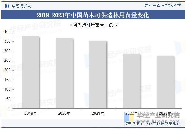 目前我国苗木生产正处于“优化整合、转型升级、提质增效”的关键时期,导致中国苗木行业产量呈现出逐年下降态势,数据显示,2023年中国苗木行业产量为381亿株,随着中国苗木的质量提高,未来行业产量将会逐步提升。