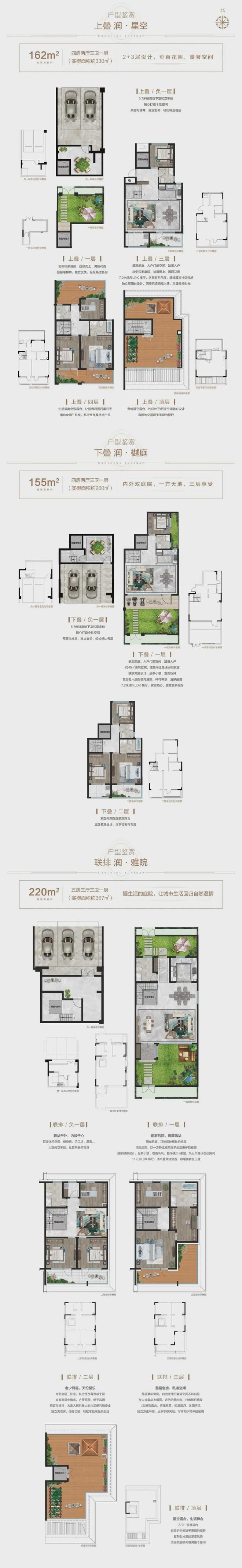 上叠北侧独立庭院入户,附赠超大露台空间,四季风采与炫酷星空一宅尽得。下叠双庭院,客厅超大落地窗与檐廊,共同回味小时候的味道,四世同堂的乐趣在院子内外流转。联排雅院,独门独院、天地共享,终极进阶目标。